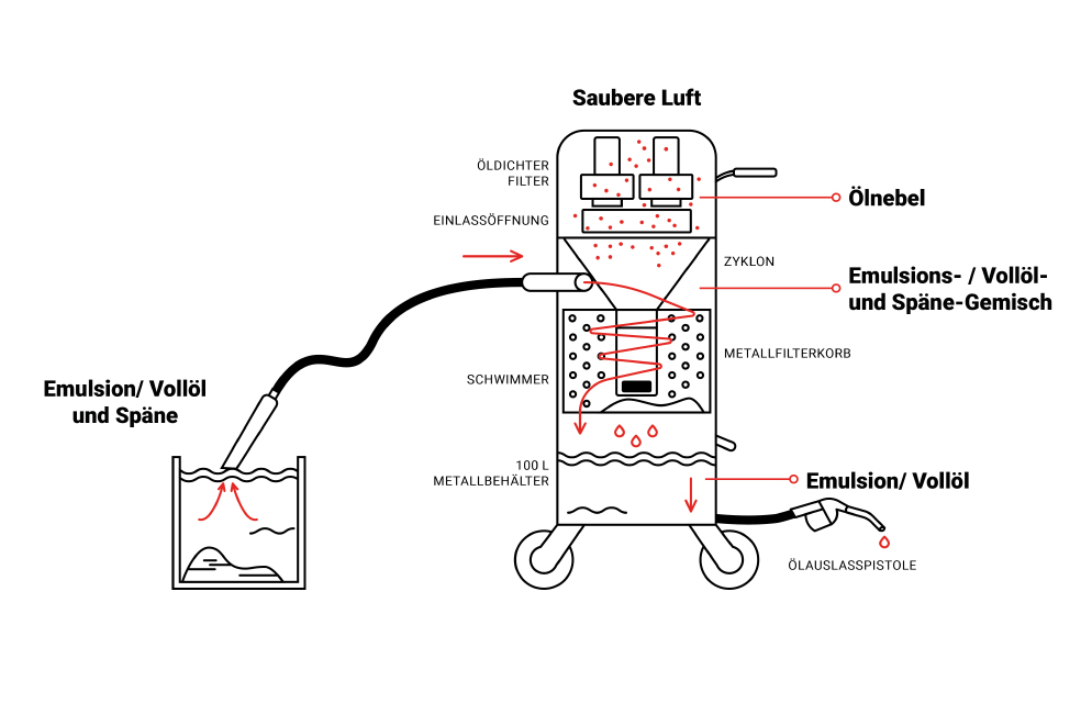 MAX CYCLONE 100 ist der industrielle Absauger MAX zum Absaugen und Trennen von Metallspänen aus reinem Öl oder Emulsionen.